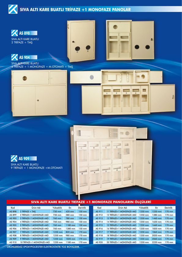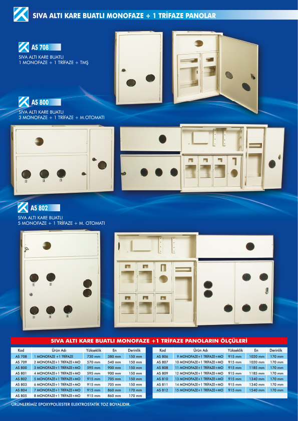 - SIVA ALTI KARE BUATLI MONOFAZE + 1 TRİFAZE PANOLAR